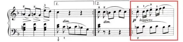在演奏左手的伴奏和弦时,杨老师提醒我们,为了使左手的和弦也拥有丰富的声部,我们可以在演奏时突出和弦中的高音。另外,还需要注意第四小节中的不协和和声的演奏。