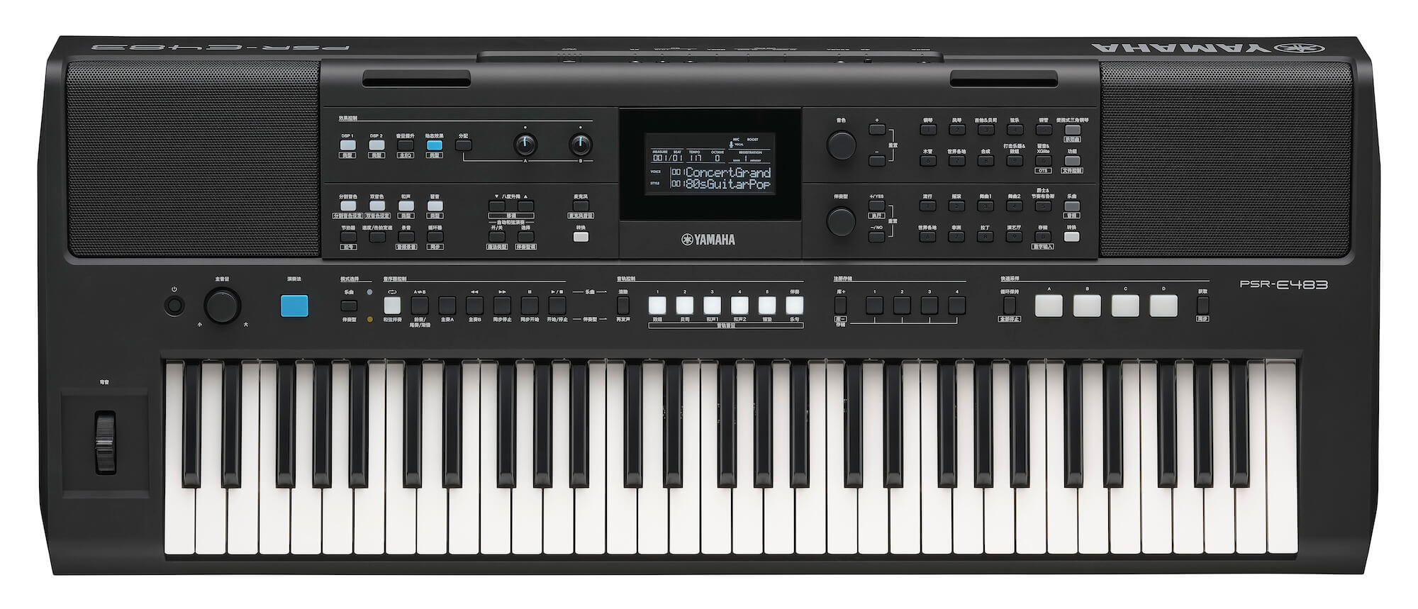 专为居家演奏者与现场表演者打造,雅马哈 PSR-E483 是一款便携式 61 键电子键盘,助您将音乐创意尽情呈现。内置 860 种富有表现力的音色、345 种预置伴奏型,并配备现场控制旋钮与弯音等进阶控制功能,PSR-E483 随时激发您的音乐灵感。